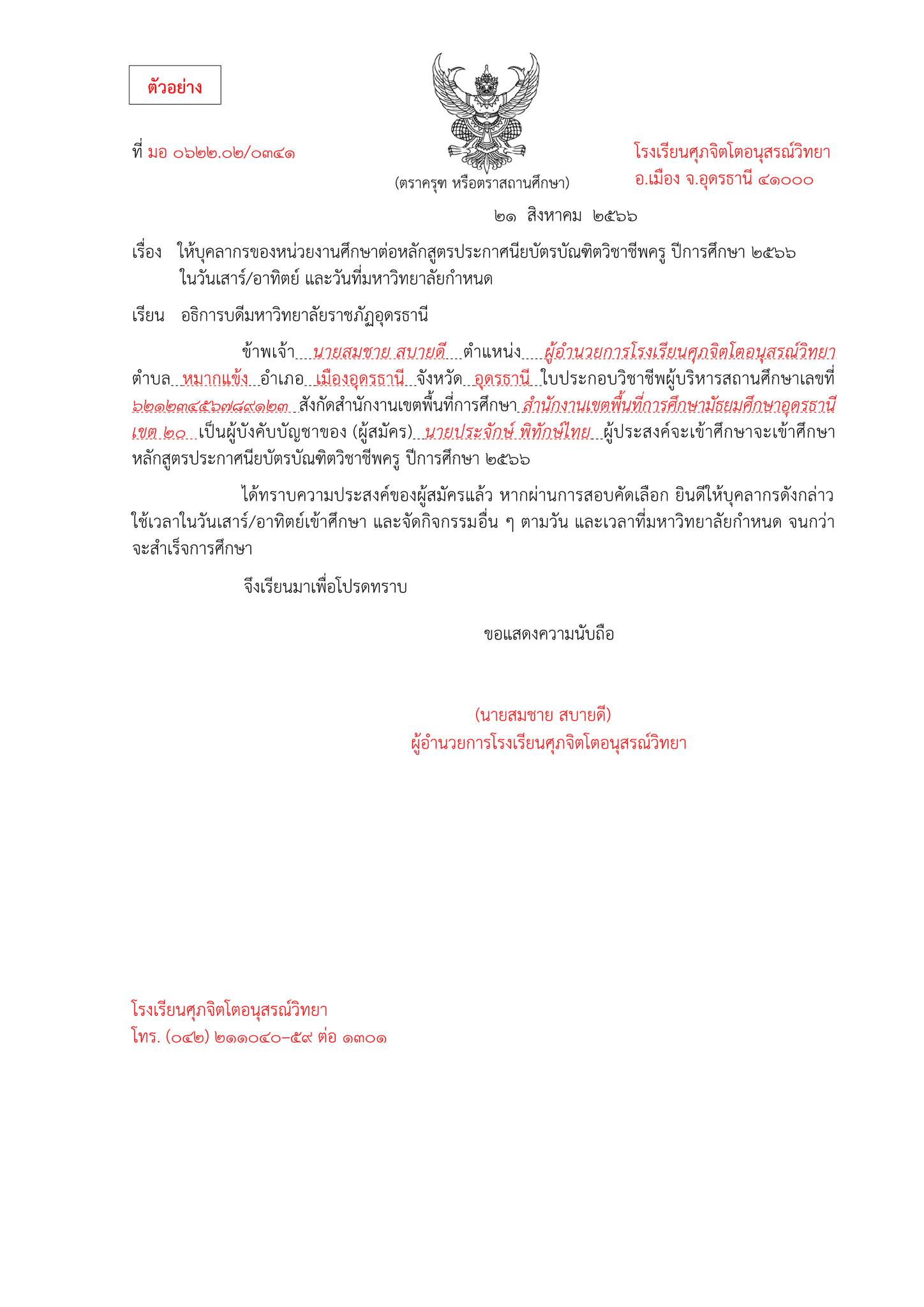 ตัวอย่างหนังสือรับรองจากหน่วยงานต้นสังกัด คลิ๊ก