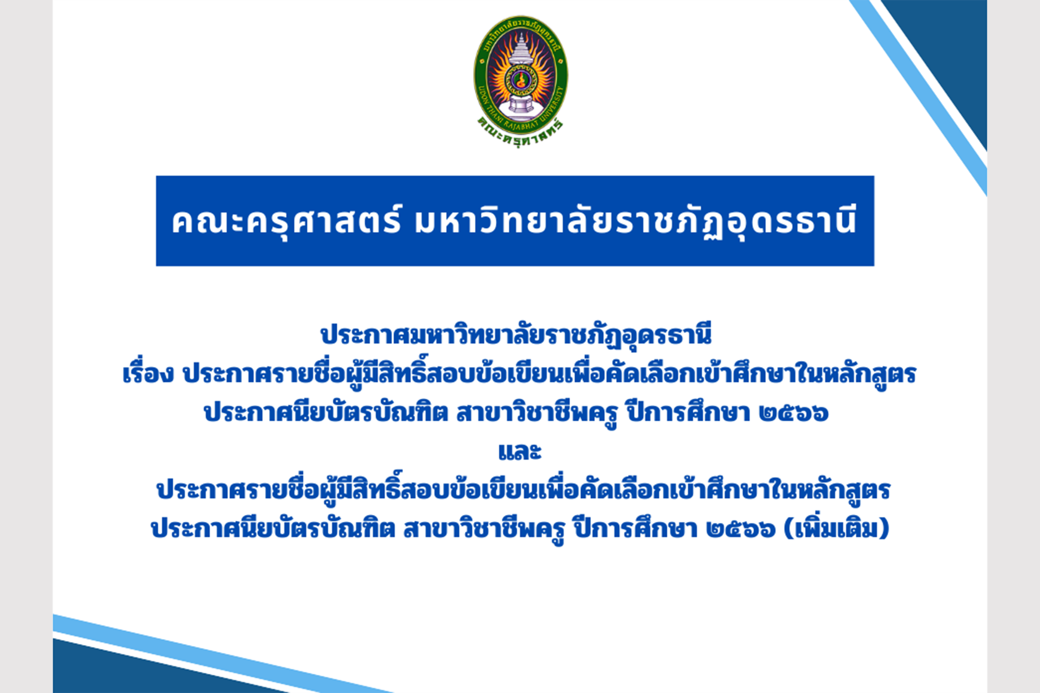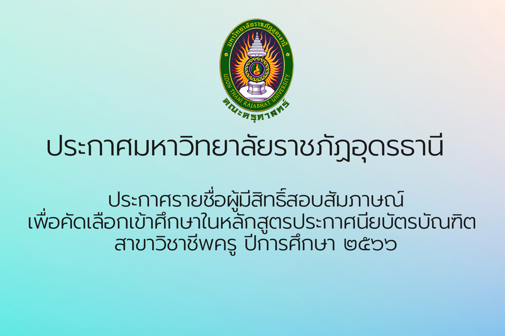 ประกาศมหาวิทยาลัยราชภัฏอุดรธานี เรื่อง ประกาศรายชื่อผู้...