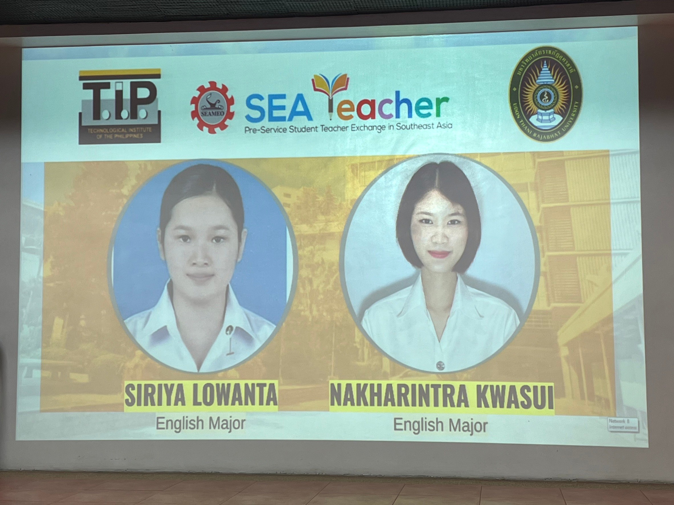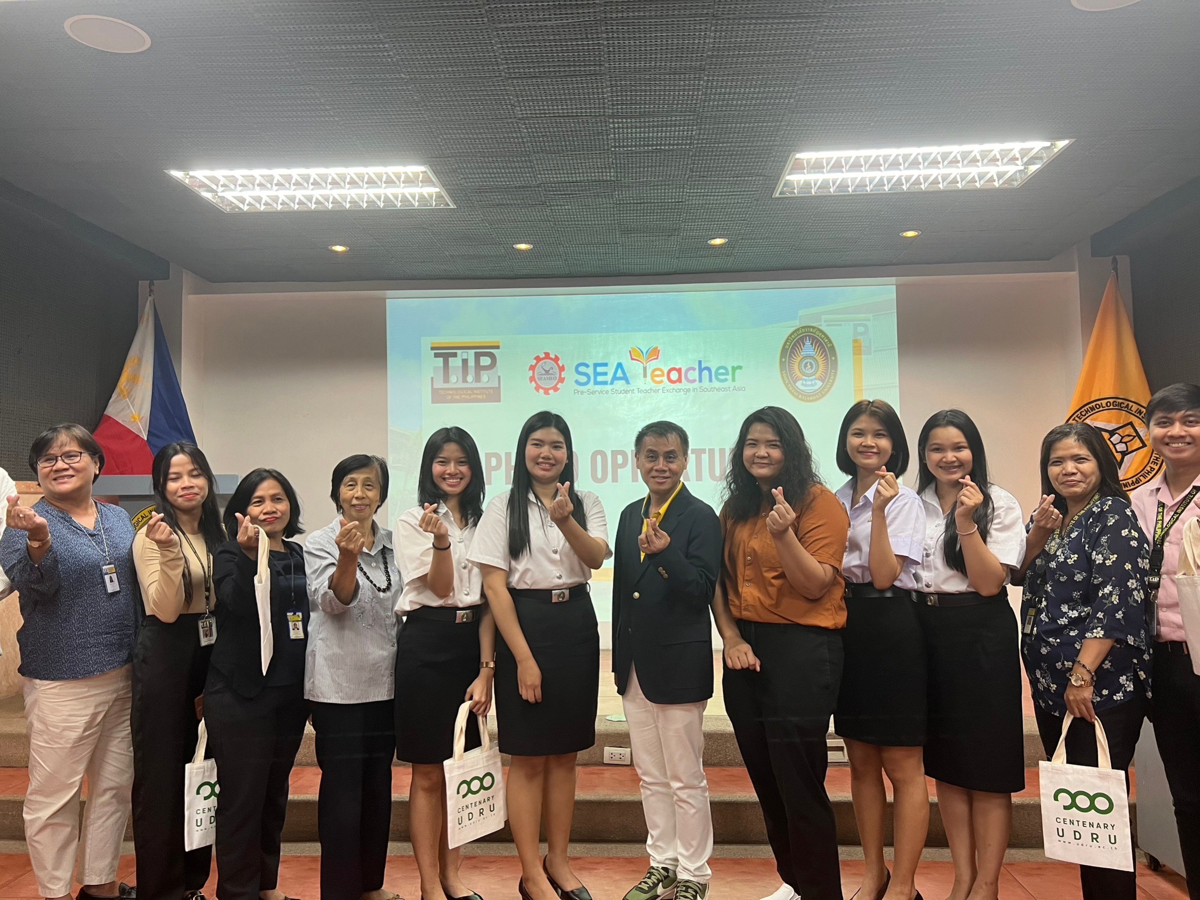 Batch 9, group 2. They are 4 student teachers from Udon Thani Rajabhat University visit to the Technological Institute of the Philippines for their one-month practicum and learning new experiences. พิธีต้อนรับคณะอาจารย์และนักศึกษาแลกเปลี่ยนประสบการณ์วิชาชีพครู รุ่นที่ 9 กลุ่มที่ 2 ชั้นปีที่ 3 จำนวน 4 คน สาขาวิชาภาษาอังกฤษ 2 คน และสาขาคณิตศาสตร์ 2 คน คณะครุศาสตร์ มหาวิทยาลัยราชภัฏอุดรธานี ณ สถาบันเทคโนโลยีแห่งประเทศฟิลิปปินส์ เพื่อแลกเปลี่ยนเรียนรู้ การปฏิบัติการสอน เรียนรู้วัฒนธรรมและประสบการณ์ในต่างประเทศเป็นเวลา 1 เดือน