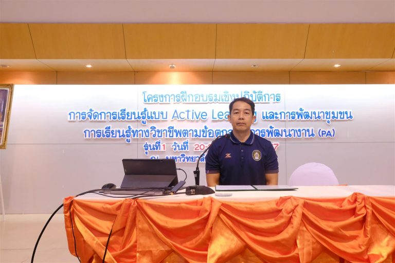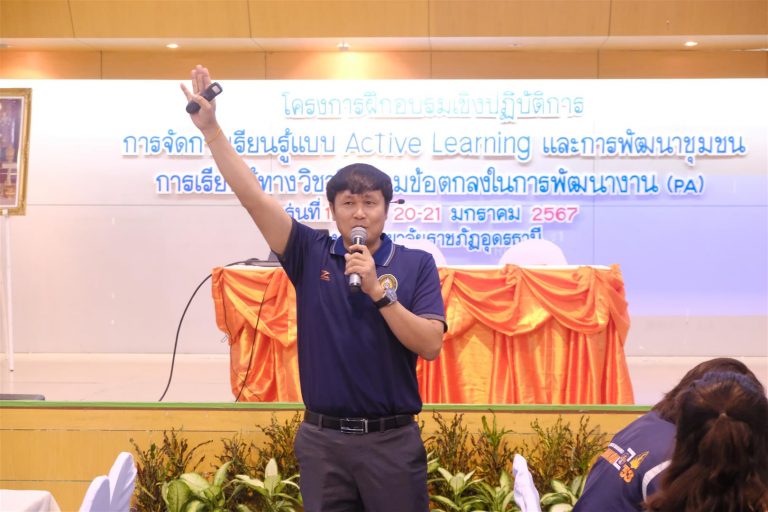 ผศ.ดร.คณิศร จี้กระโทก รองคณบดี เป็นผู้รับฟังรายงานและกล่าวเปิด โครงการการฝึกอบรมเชิงปฏิบัติการการจัดการเรียนรู้แบบ (Active Learning)และการพัฒนาชุมชนการเรียนรู้ทางวิชาชีพตามข้อตกลงการพัฒนางาน (PA) โดยมี อ.ญาดา ช่อสูงเนิน หัวหน้าฝ่ายหลักสูตรประกาศนียบัณฑิตวิชาชีพครู เป็นผู้กล่าวรายงาน