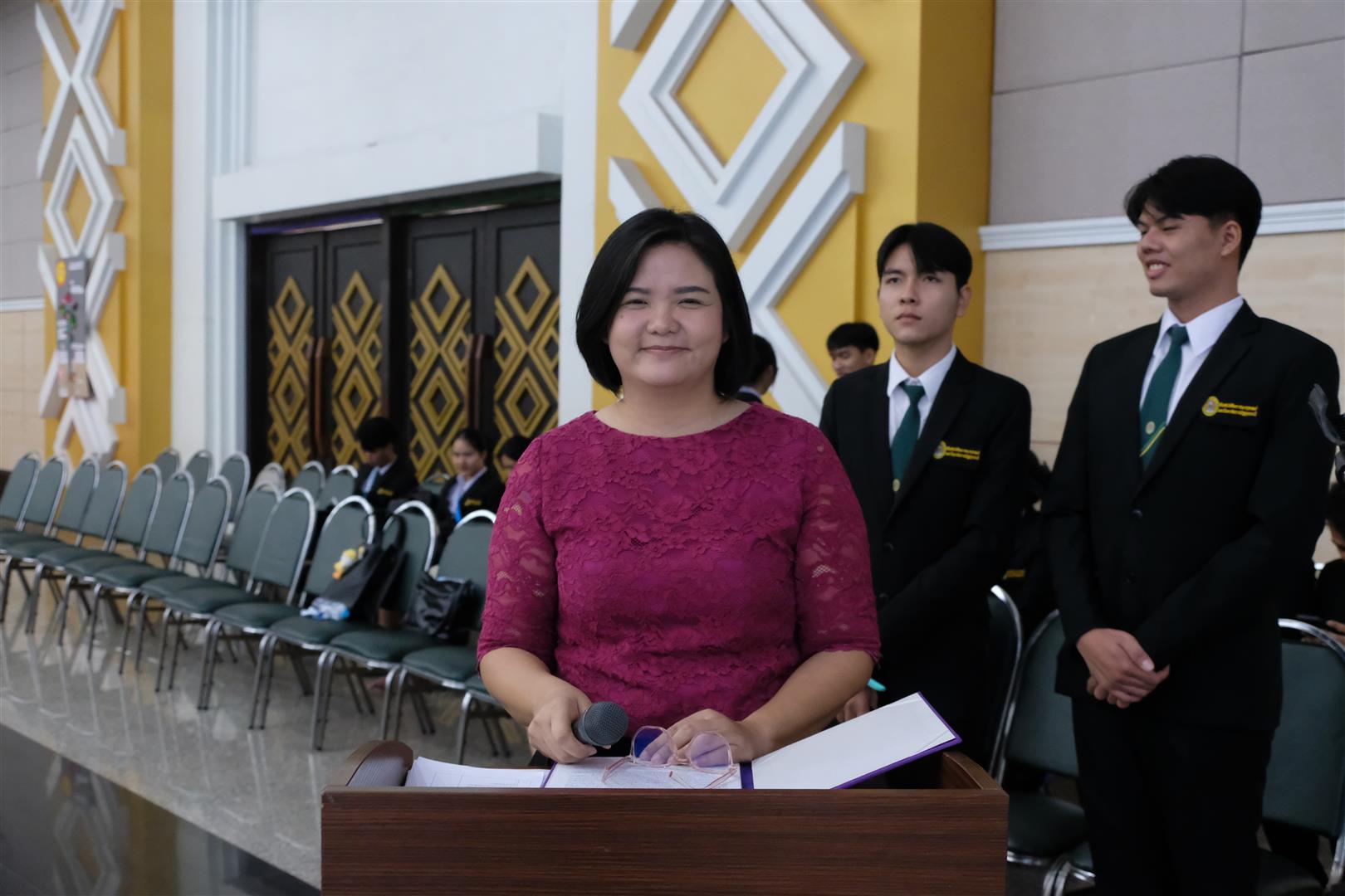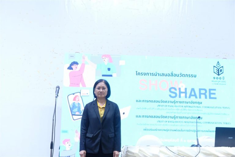 วันพฤหัสบดี ที่ ๓ ตุลาคม ๒๕๖๗ ผศ.ดร.กฤตวรรณ คำสม รองคณบดีคณะครุศาสตร์ ได้กล่าวเปิดโครงการนำเสนอสื่อนวัตกรรม SHow and Share ของนักศึกษา SIL3 และการทดสอบวัดความรู้ทางภาษาอังกฤษ (Test of English for International Communication: TOEIC)