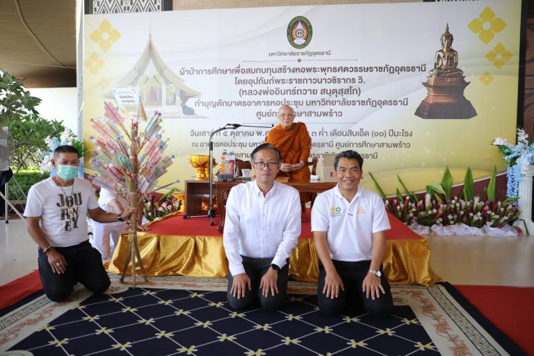 วันเสาร์ที่ ๕ ตุลาคม ๒๕๖๗ ผู้ช่วยศาสตราจารย์ ดร.ปุณรัตน์ พิพิธกุล คณบดีคณะครุศาสตร์ นำทีมบุคลากรในคณะร่วมพิธีทอดผ้าป่าการศึกษา เพื่อสมทบทุนสร้างหอพระพุทธศตวรรษราชภัฏอุดรธานี โดยอุปถัมภ์พระราชภาวนาวชิรากร วิ. (หลวงพ่ออินทร์ถวาย สนฺตุสสฺโก) ณ หอประชุม มหาวิทยาลัยราชภัฏอุดรธานี ศูนย์การศึกษาสามพร้าว เวลา ๐๗.๐๐ น. ได้ทำพิธีตักบาตร พระสงฆ์ ๙ รูป (หลวงพ่ออินทร์ถวาย สนฺตุสสฺโก และคณะสงฆ์) และ คณะครุศาสตร์ได้จัดทำโรงทานอาหารกับผู้เข้าร่วมงานเพื่ออนุโมทนาบุญใหญ่ในครั้งนี้