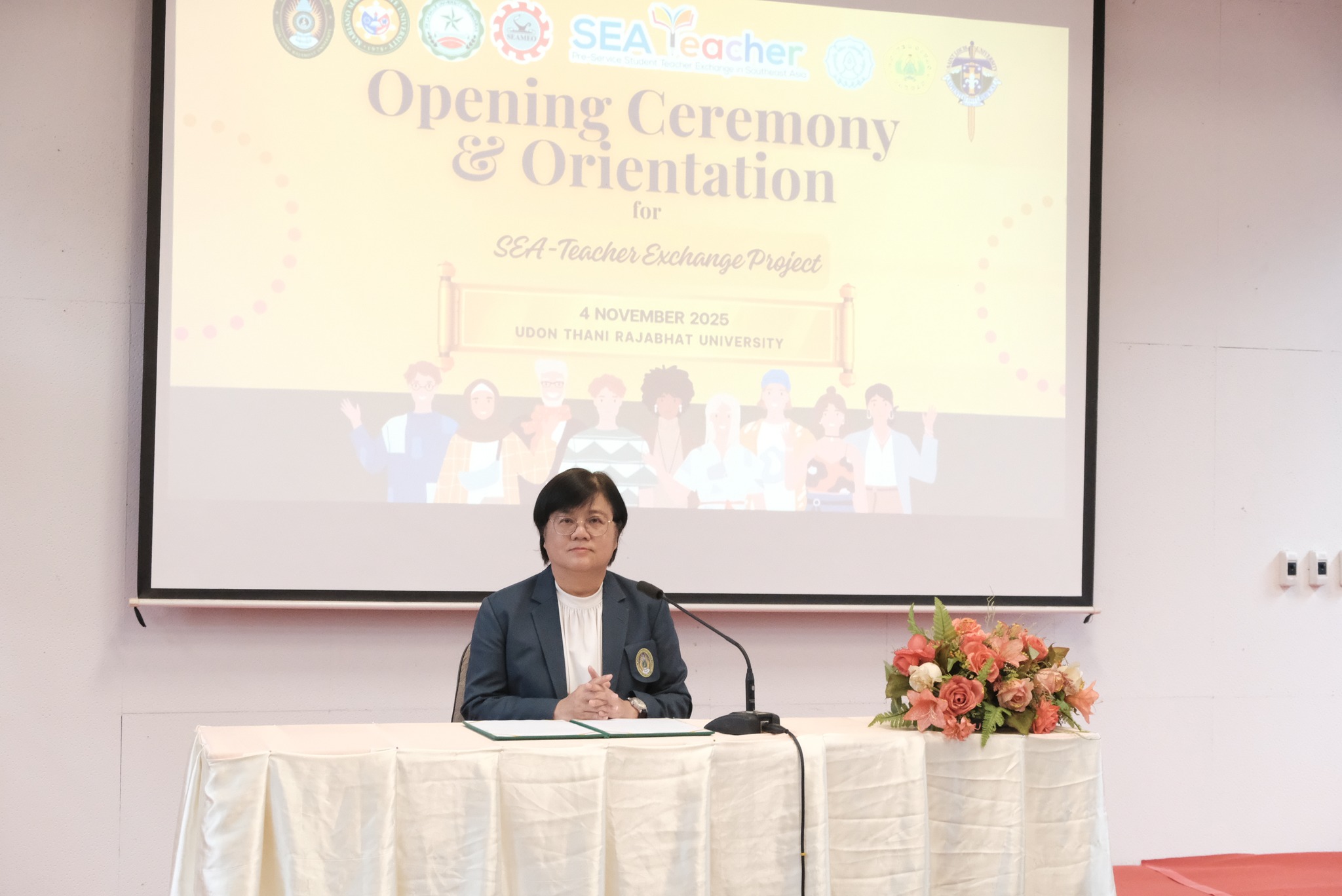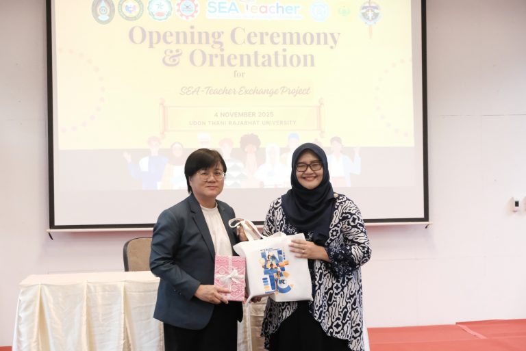 วันที่ 4 พฤศจิกายน 2568 คณะครุศาสตร์ มหาวิทยาลัยราชภัฏอุดรธานี และ โรงเรียนสาธิต มหาวิทยาลัยราชภัฏอุดรธานี ร่วมกับ วิทยาลัยนานาชาติ จัดปฐมนิเทศนักศึกษาต่างชาติ ในโครงการแลกเปลี่ยนนักศึกษาครูในเอเชียตะวันออกเฉียงใต้ SEA-Teacher รุ่นที่ 11 โดยมี ผศ.ดร.คณิศรา ธัญสุนทรสกุล อธิการบดี