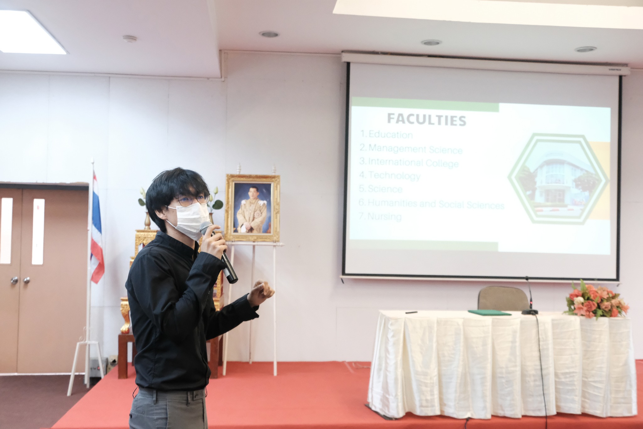 กล่าวต้อนรับนักศึกษาในโครงการ กิจกรรมดังกล่าวจัดขึ้นเพื่อแลกเปลี่ยนนักศึกษาครูระหว่างมหาวิทยาลัยราชภัฏอุดรธานีและมหาวิทยาลัยเครือข่ายข้อตกลงความร่วมมือในเอเชียตะวันออกเฉียงใต้